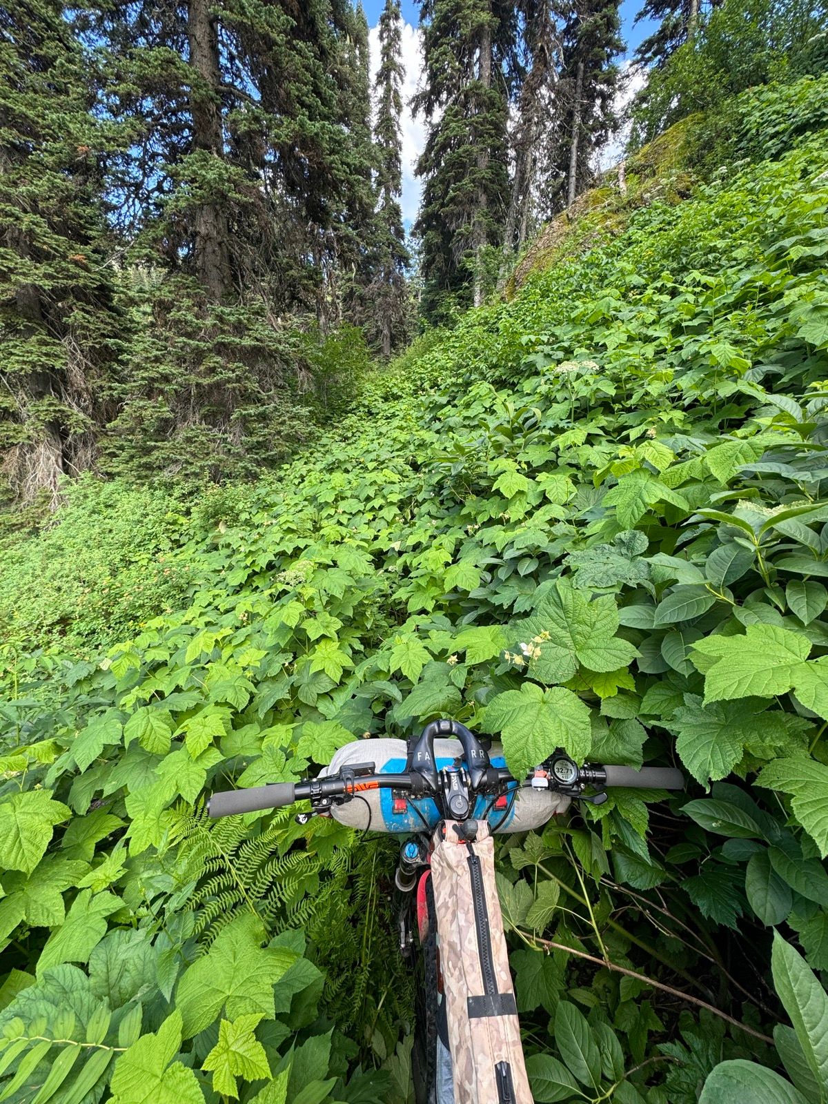 The Broken Leg segment of Alpine #7 was definitely less ridable than the northern portion—a circumstance not helped by traveling north to south. The last half mile was more grown over than anything I’d encountered to that point—though it turns out just a warmup for Posey Creek.