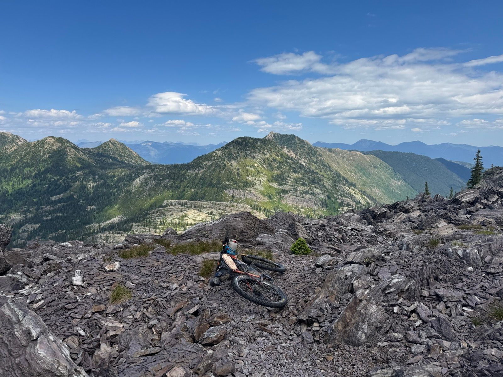 The day started off on a high note, with a fast and fun 2000’ descent down trail recently cleared of brush by the Flathead Area Mountain Bikers trail crew. (I was curious what kind of implement might be used to clear the teeming brush: it turns out, a weed walker equipped with a circular saw blade at its end!)