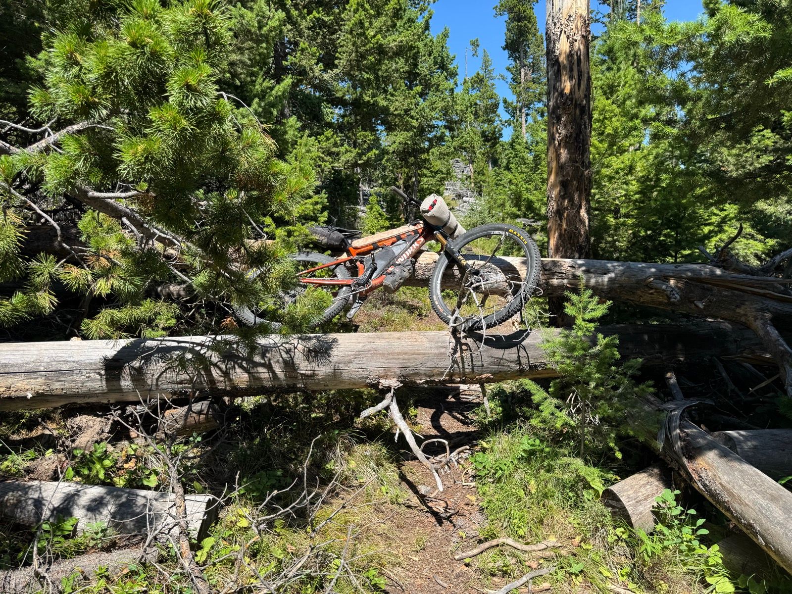 The first 3 miles after MacDonald Pass have some significant rock gardens to test one’s skills and bravery. The next three miles would have been far more ridable if not for a bunch of downed trees. Upon reaching the burned area at Jericho Mountain the CDT turned into easy for the next 8 or so miles of mostly climbing, before turning off onto a newer and fun stretch of trail, Joe Bowers.