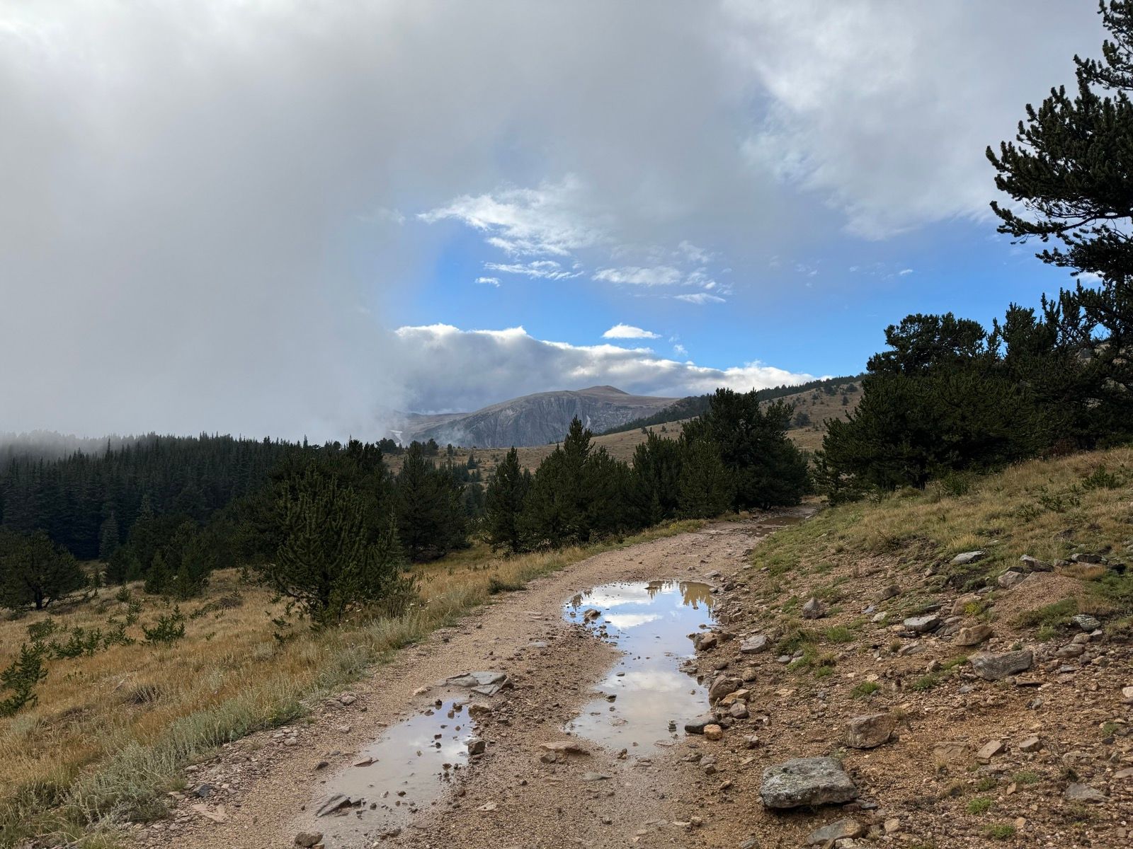 After saying farewell, made steady progress climbing back up the next climb until heavy rain set in. I stopped off to wait out the rain. When the rain let up I resumed my slow progress on rocky, slick ATV trails, and passed through the odd collection of cabins in Alice, Colorado. I’ve never in my life seen so many no trespassing signs (or felt so tempted to poach one of the many hot tubs I saw along the way.