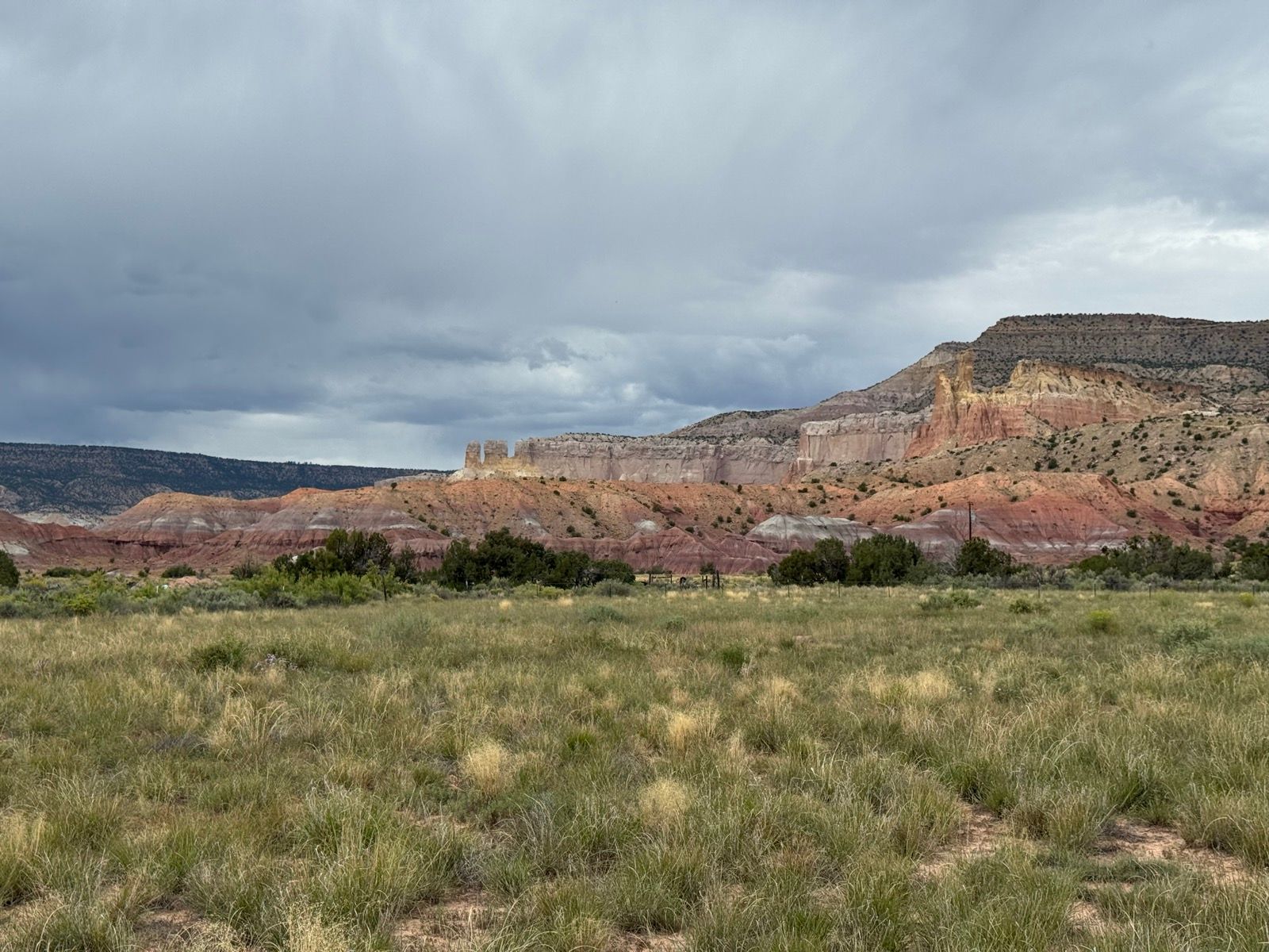 Eventually, with dark thoughts and profuse profanities crowding my mind, I stopped and found a place to pass the time while waiting for the road to dry. After maybe 1.5 hours of sitting around (good occasion to get out my sewing kit and repair my torn rain pants), I ventured back on the road and found it mostly ridable (aside from a few agonizing sections) until I reached an actual road and suddenly life returned to normal. Following the dendritic structure of ever-bigger roads, I eventually made it to the paved highly, Ghost Ranch, and Abiquiu.