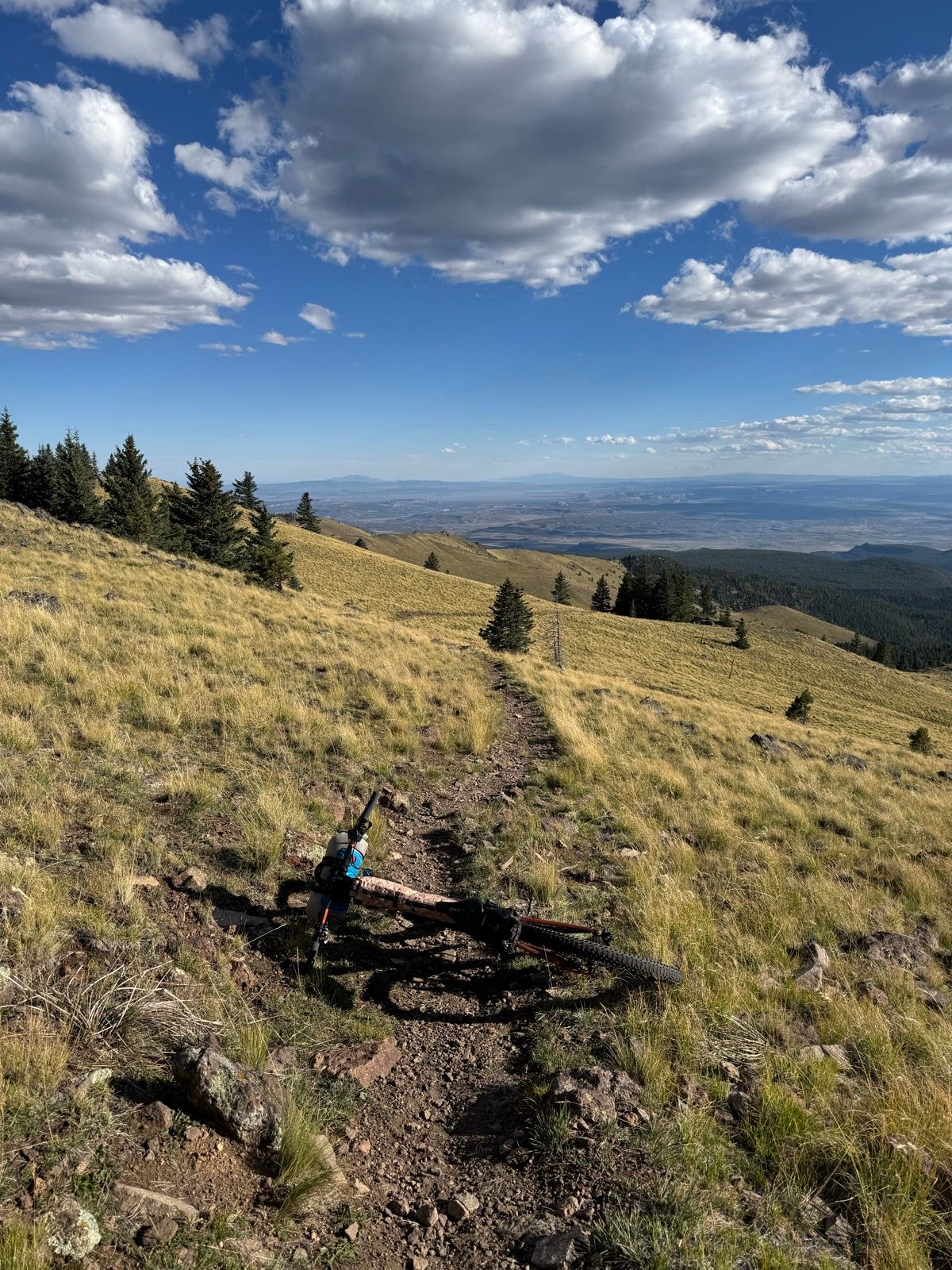 Today was spent cruising along on pleasant if unremarkable singletrack. The trail clearly gets used more by cows than humans around here, but it’s mostly modern and ridable (if in need of a little chainsaw love).
