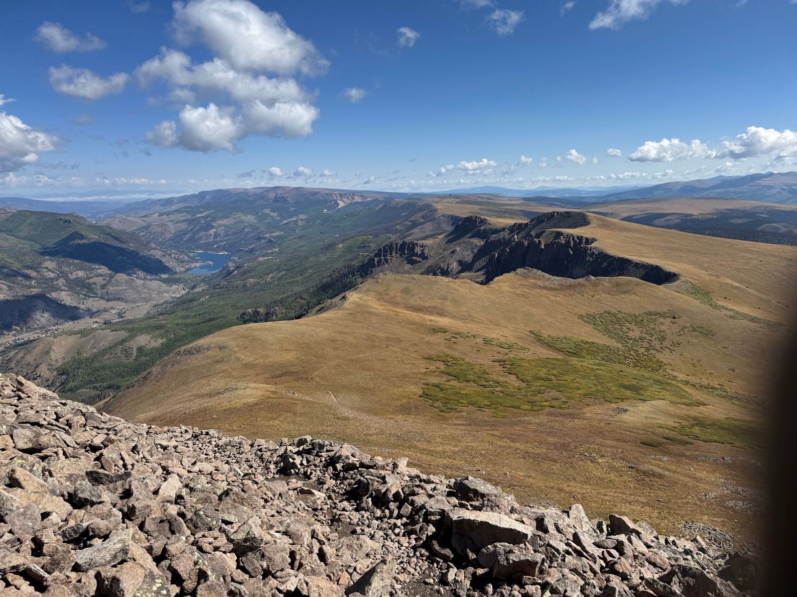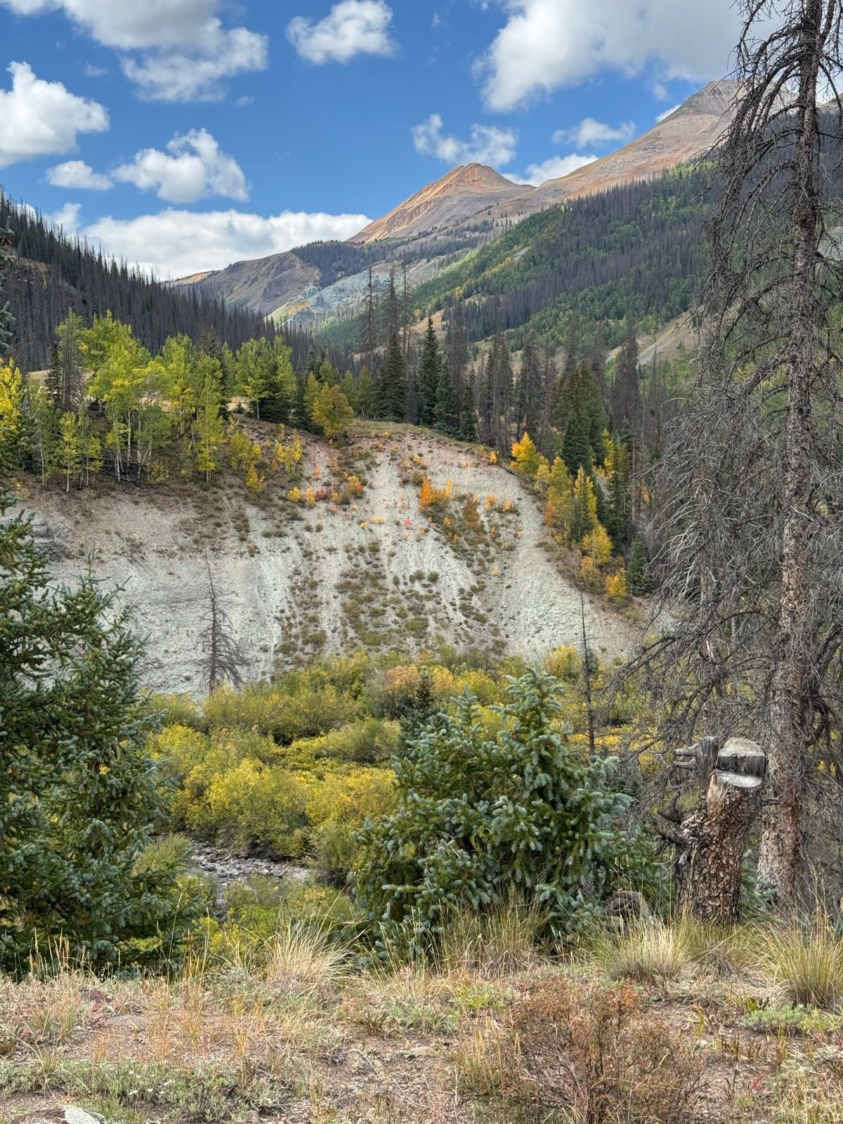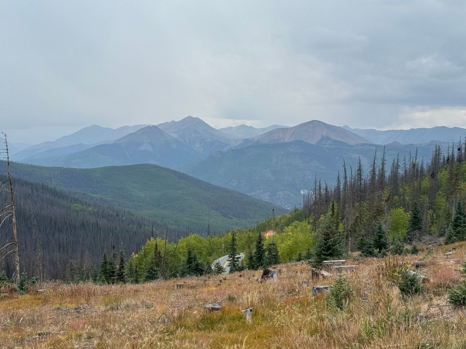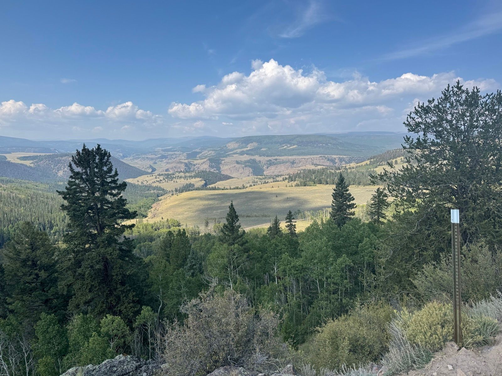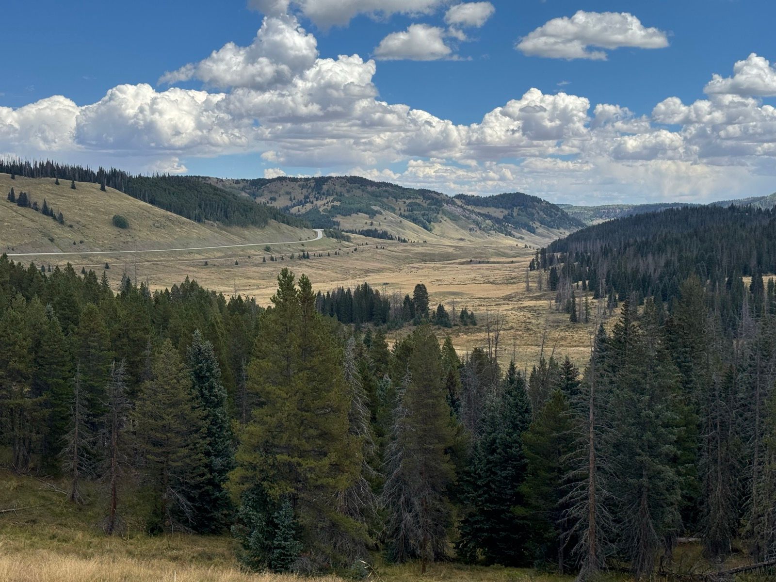 The immediate change in landscape is striking. I started the day among the jagged pinnacles and spires and ramparts of the volcanic southern San Juan mountains. By this afternoon, I’m crossing low ridge lines over rolling valleys of grass.